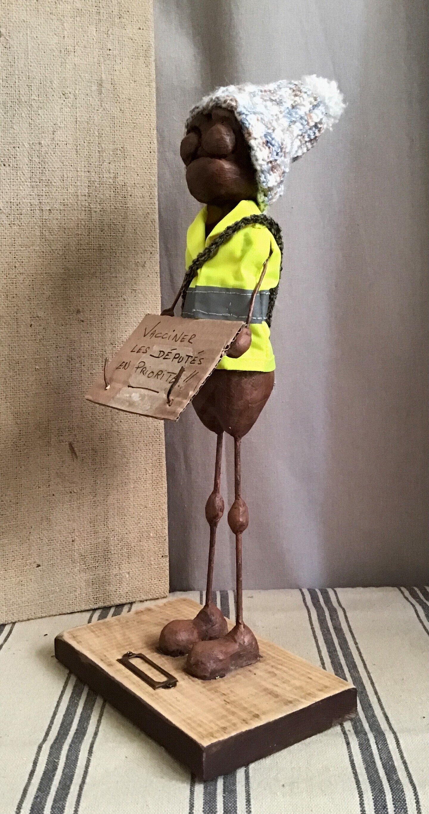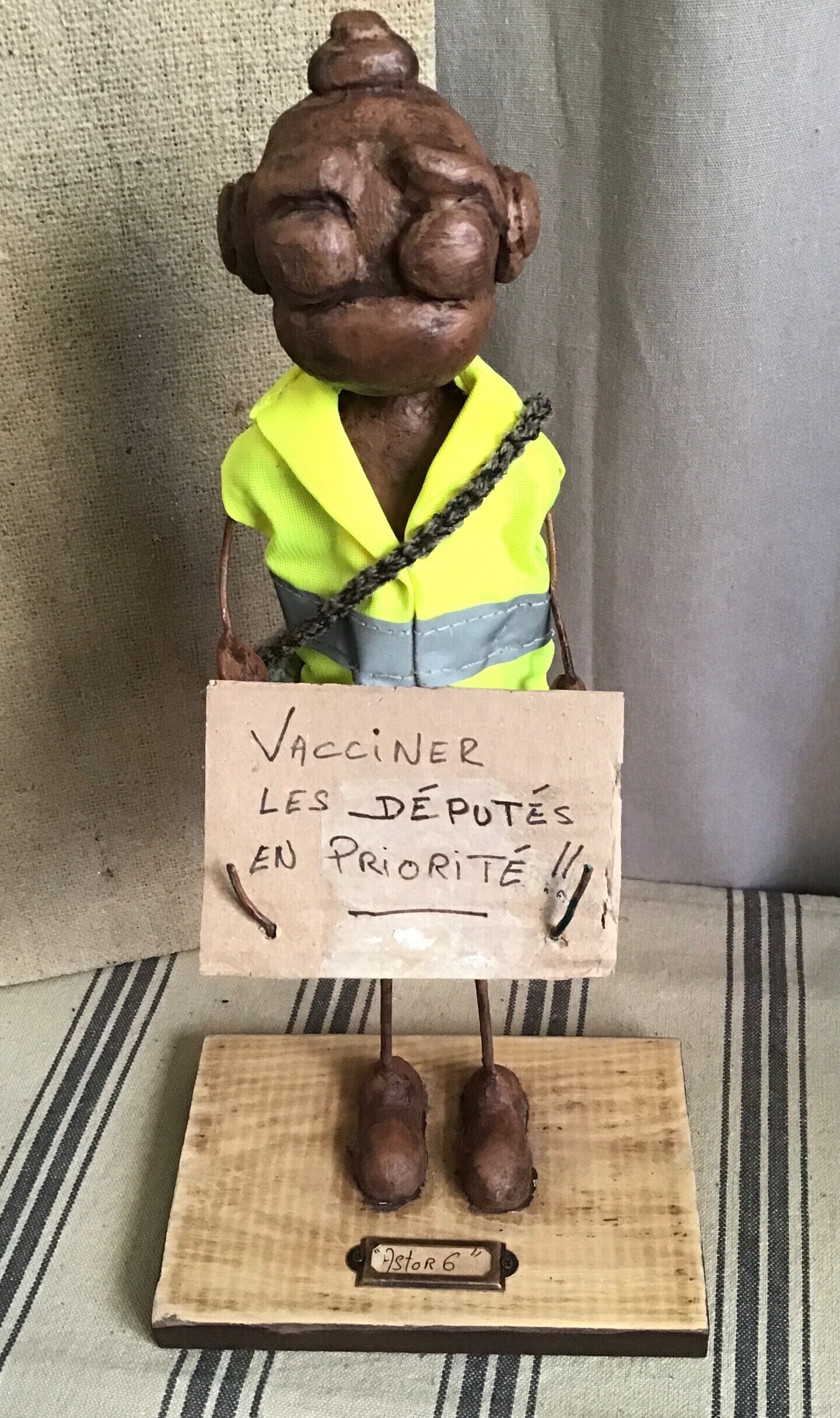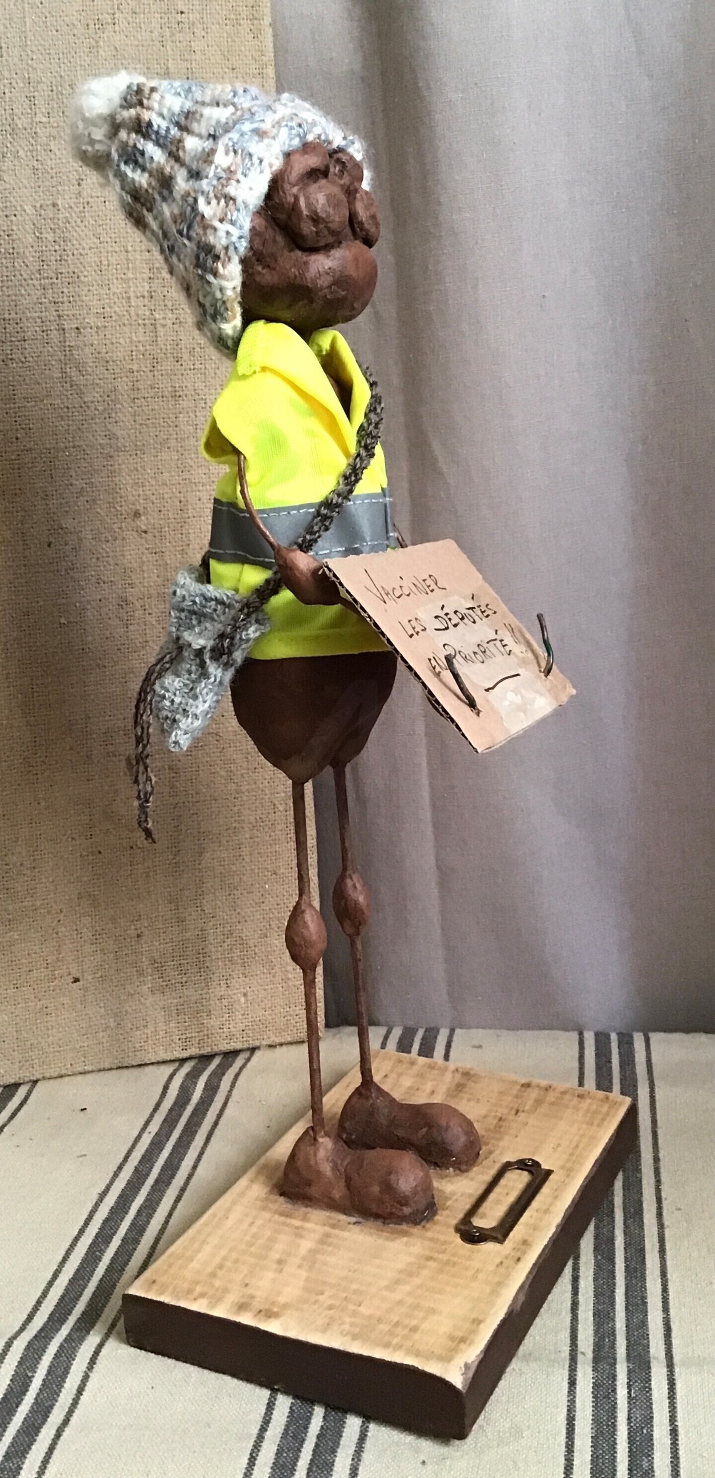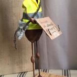 « Astor 6 » numéro 1474 - 40 x 12 x 19. Pâte auto durcissante et peinture acrylique, laine, carton entoilé. Oeuvre originale et unique.