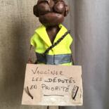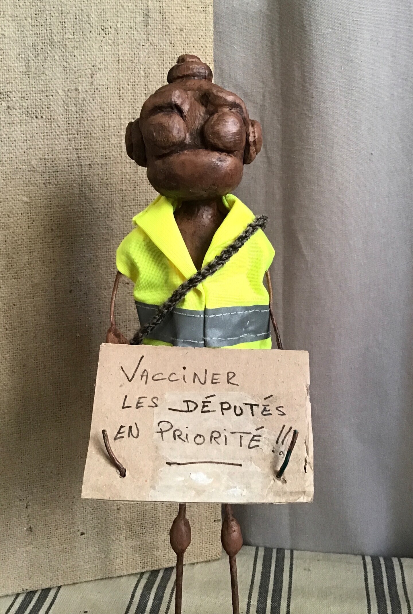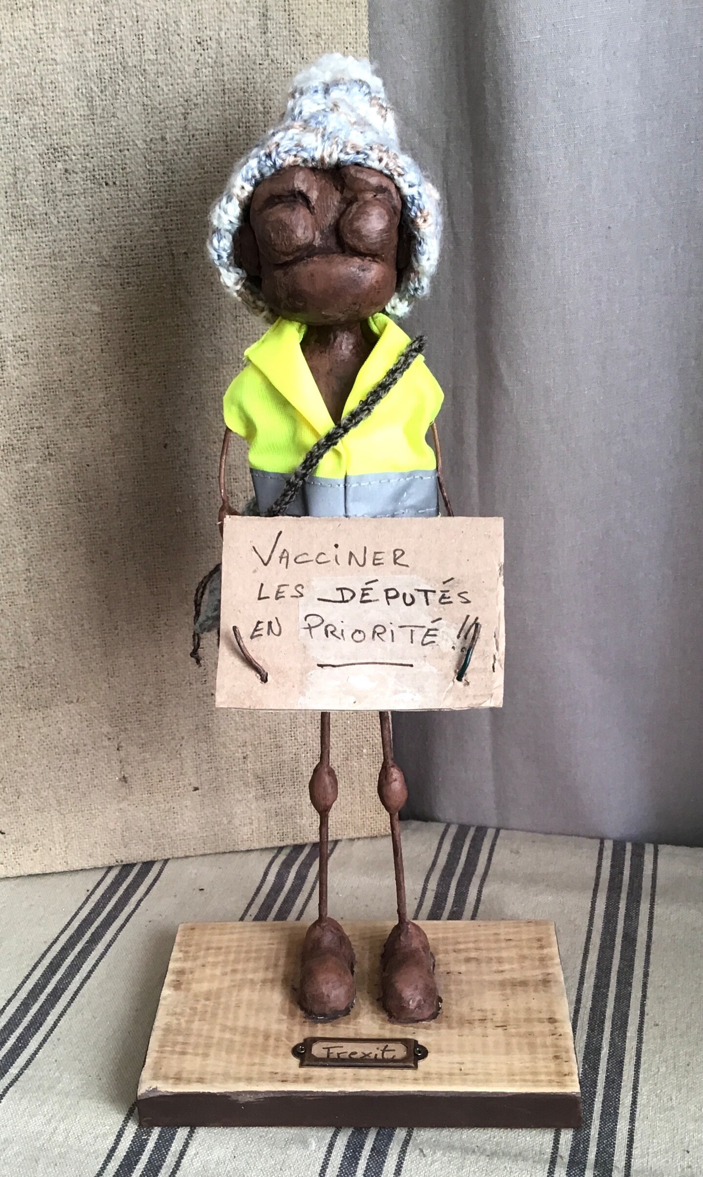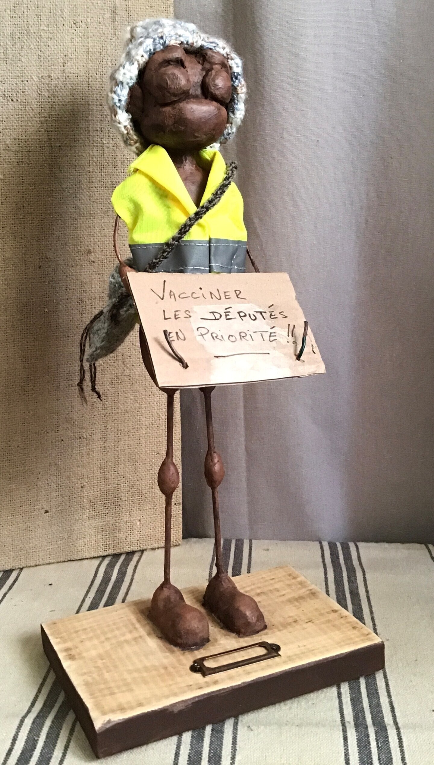 « Astor 6 » numéro 1474 - 40 x 12 x 19. Pâte auto durcissante et peinture acrylique, laine, carton entoilé. Oeuvre originale et unique.